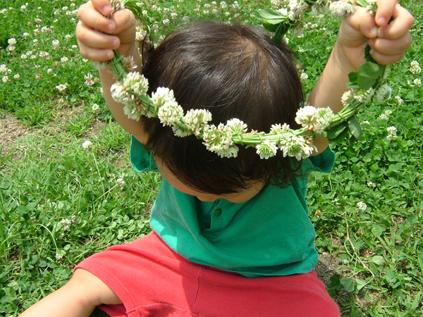 シロツメクサの首飾りを作ってかけてあげるもあっさり取られ・・・