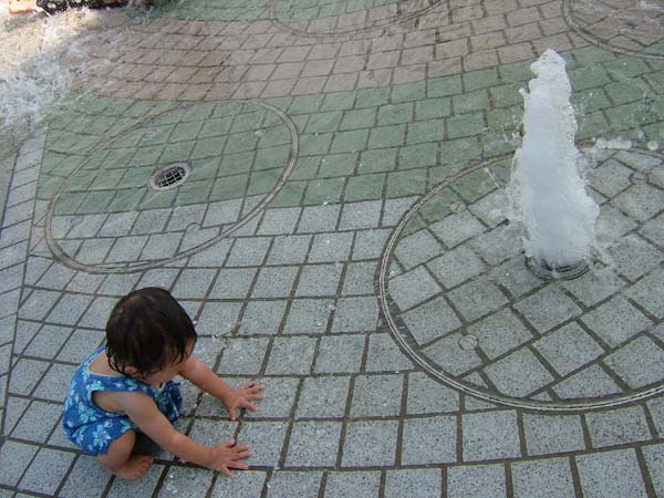 溜まっている水をバシャバシャやったり、噴水を踏んだり、噴水の間を歩いたり、楽しんだようです(^^)v