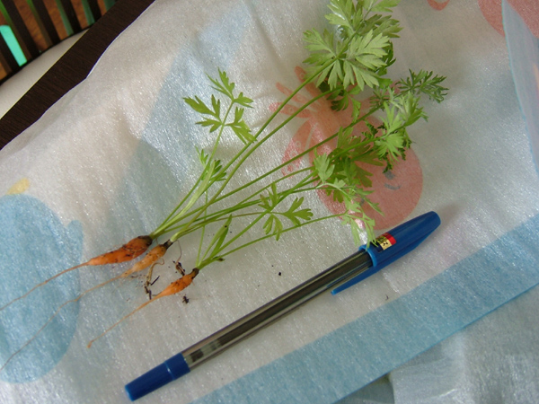 こちらはベランダ菜園のミニキャロット。