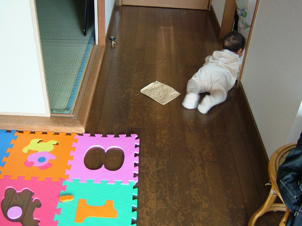 ・せんべいなど、おやつを渡すと自分で口に持って行き、食べられるようになりました。そして落としたせんべいのかけらを自分で拾ってまた食べるように。