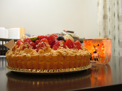 お誕生日のケーキは私がお気に入りの近所のケーキ屋さんのいちごのタルト♪