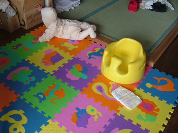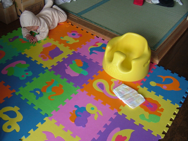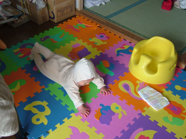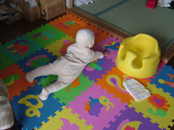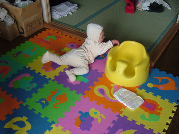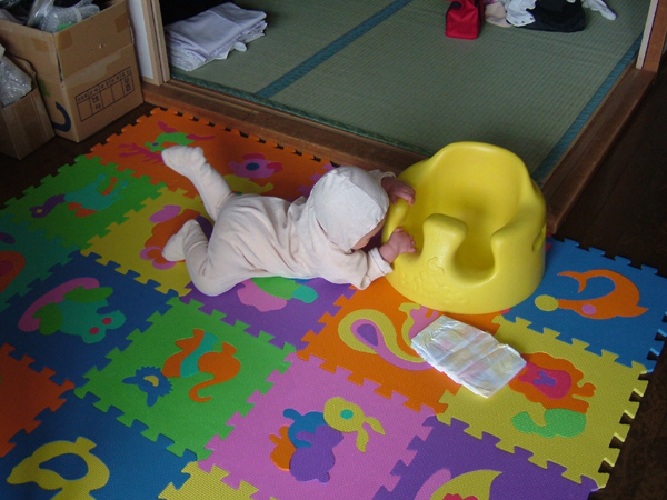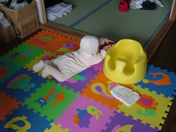 でも、ちょっとだけ自由に動けるようになったおかげで、うんしょうんしょと移動したり、その先々でいろんなものをいじって遊ぶようになり、グズグズがほんとに減りました(^^)v
