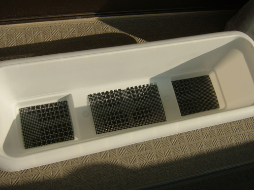 まずはプランターの底に網をひいて・・・