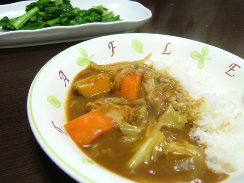 キャベツと厚揚げの和風カレー(ちょこっと白みそ入り)です。