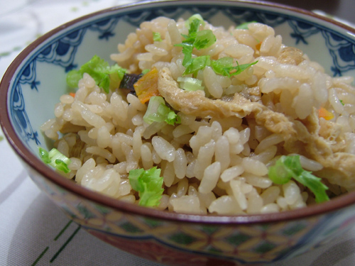 7.炊き上がったらお茶碗に盛り、みじん切りにした大根菜を散らします。