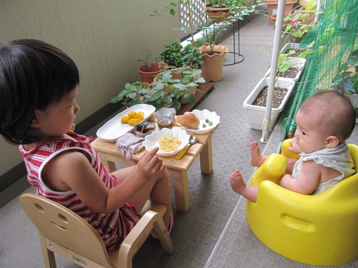 ベランダで昼ごはんを食べるのがチッチのお気に入り。
