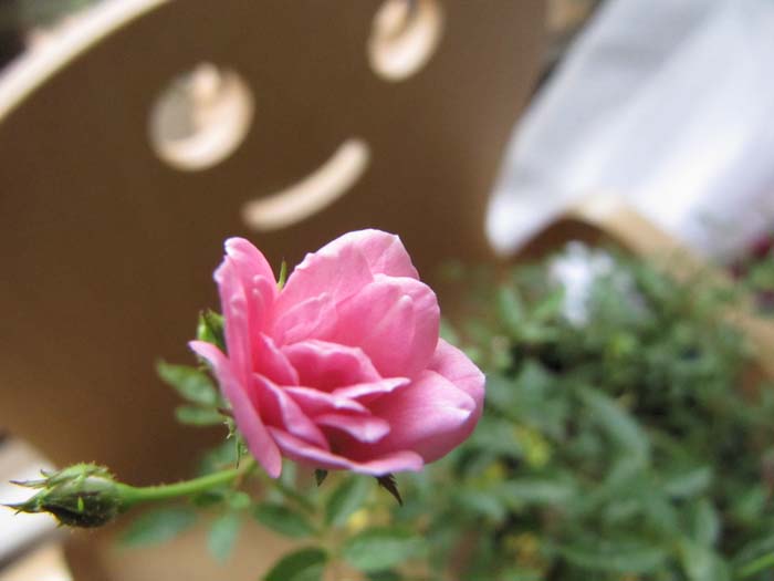 ホームセンターの見切り品で買ったミニバラが開花しました(^^)v