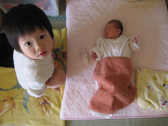 モッチの頭をなでまわしたり、おむつや着替えを持ってきてくれたり
